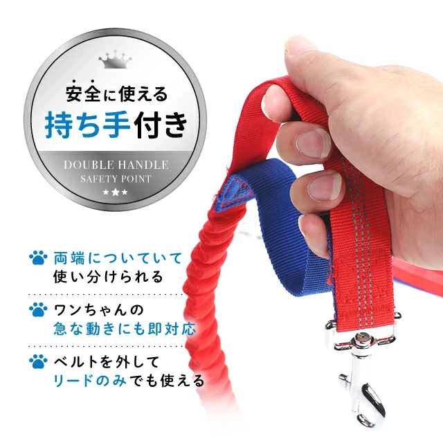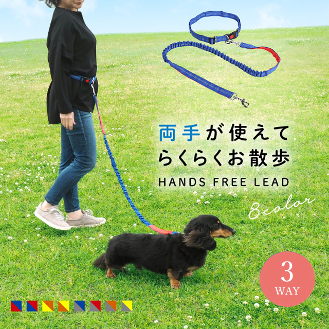 送料無料 冬新作 ハンズフリー リード 3way 犬 肩がけ 腰巻き 軽量 丈夫 伸縮性 360度回転 ダブルフック 多頭飼い 負担軽減 衝撃吸収 長さ調節可能 ジョギング 肩掛け ショルダー ポール留め 便利 長め マルチ パラシュートコード