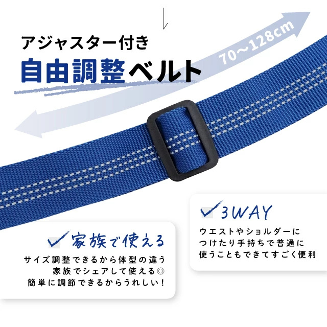 | 仕様 | ◆サイズ ・1.95m(ハンズフリー最大時) ◆腰ベルトの長さ 70-128cm ◆素材 ・ナイロン製パラシュートコード ・ダイキャスト金具 |