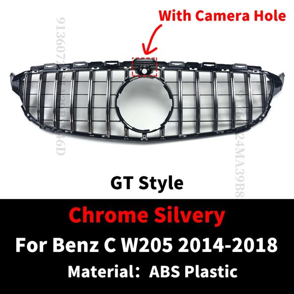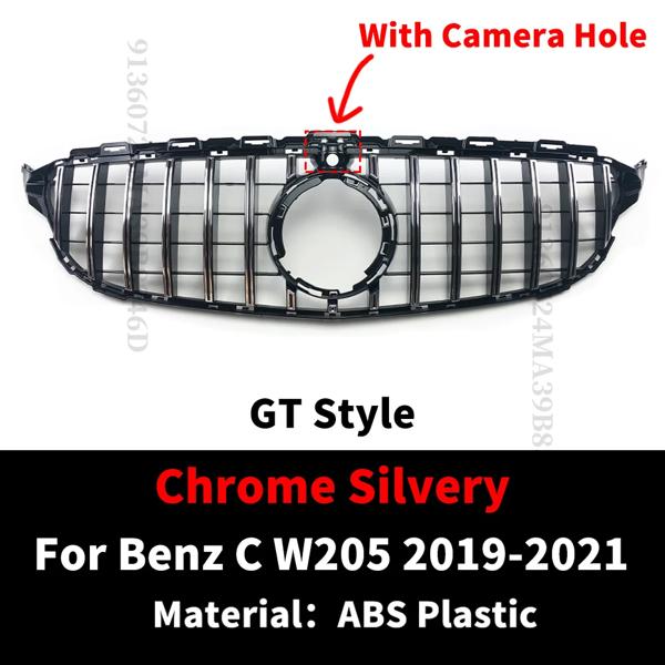 GT スタイルフロントバンパーグリルグリルメルセデス W205 S205 ベンツ C C205 C180 C200 C250 C300 C260 2014-2021 上部交換