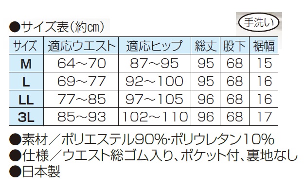 ●仕様/ウエスト総ゴム入り、ポケット付、裏地なし