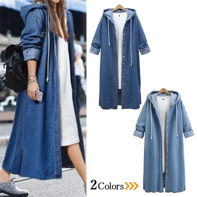 春新作 新作 送料無料 レディース アウター デニム コート レディース ロングコート コート フード付き フリーサイズ トレンチコート カジュアル 秋 ブルー 大人 ワンピース カジュアル 秋 大人 上品 ゆったり