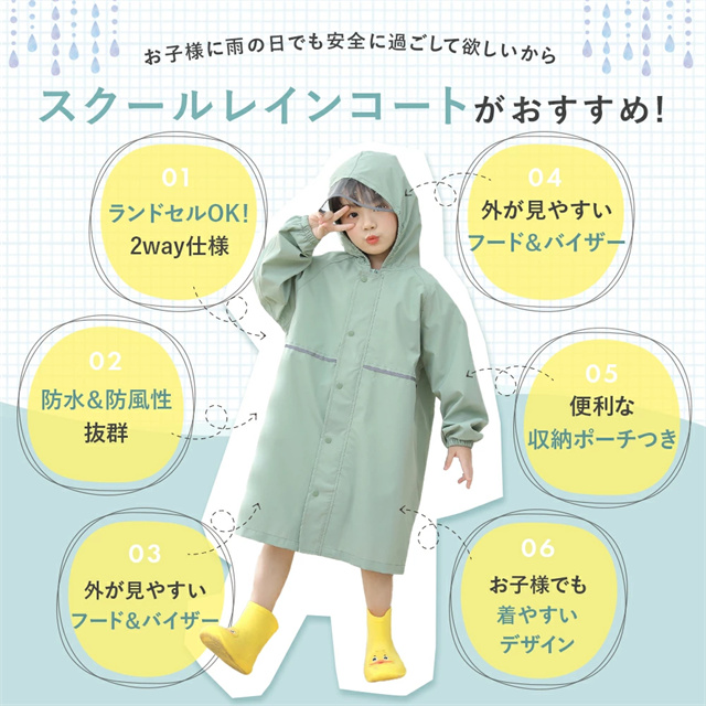 冬新作 送料無料 レインコート キッズ ランドセル対応 カッパ 子供 小学生 幼稚園 保育園 女の子 男の子 レインウェア 防水 撥水 入園 入学 かわいい おしゃれ ランドセル リュック対応 雨具 収納バッグ 反射テープ リフレクター レインポンチョ