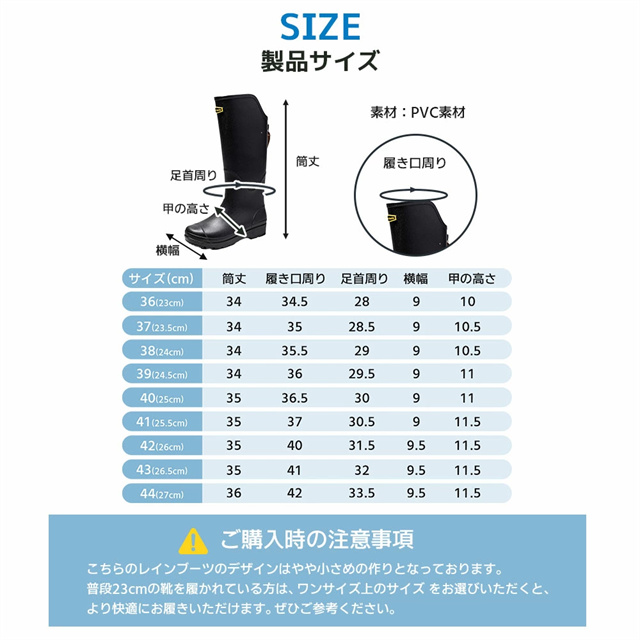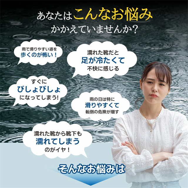 | 特徴 | 【さっと履ける★おしゃれ度MAX】 シンプル&スタイリッシュな雨の日コーデの完成!程よい丈感で、パンツはもちろん、スカート&ワンピースにも相性抜群。毎日のコーデをもっとオシャレに、もっと素敵に演出します。 【トレンド感溢れる4カラー】 大人気のくすみカラーがラインナップ!アイボリー、ベージュ、ブラックの3色展開で、どんなスタイルにもマッチ。雨の日だからこそ、洗練された色使いを楽しんで。 【驚きの履き心地★快適フィット】 柔軟性抜群の素材使用で、まるでソックスのような履き心地!圧迫感ゼロ、ノーストレスで一日中快適。足全体にやさしくフィットする、究極の履き心地を実現。 【蒸れ知らずの通気性】 厳選されたPVC素材採用で、ムシムシする雨の日も快適!通気性バツグンで、いやな蒸れとはサヨナラ。雨の日の憂鬱を吹き飛ばす、爽快な履き心地です。 【安心の滑り止め機能】 特殊な滑り止め加工で、雨の日も安心・安全!水濡れにも強い、こだわりの靴底設計。悪天候でも足元からしっかりサポートします。 |