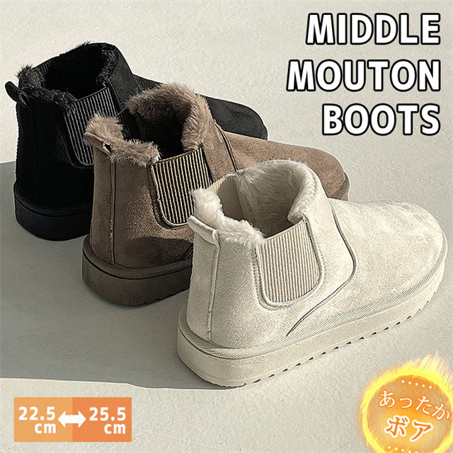 送料無料 春新作 ムートンブーツ サイドゴア レディース シューズ 靴 くつ ショートブーツ ファー 極暖 ボアムートン あったかい カジュアル フラット ローヒール ぺたんこ 防滑 痛くない 防寒 暖かい 歩きやすい もこもこ