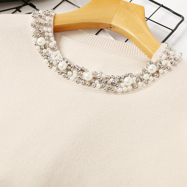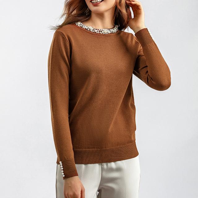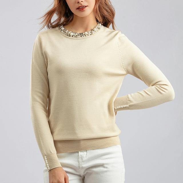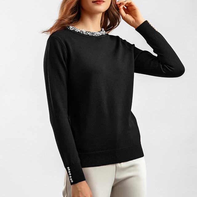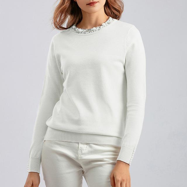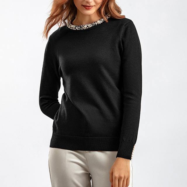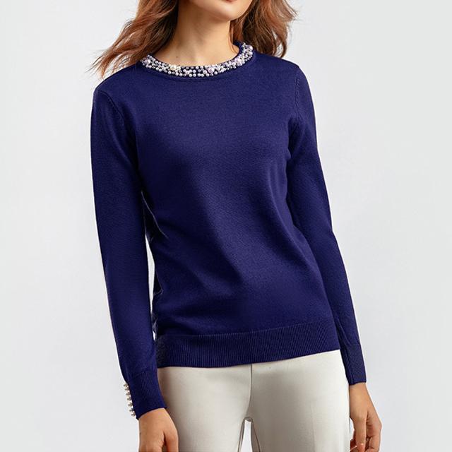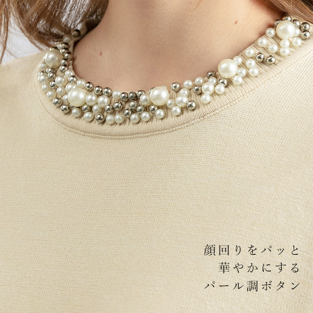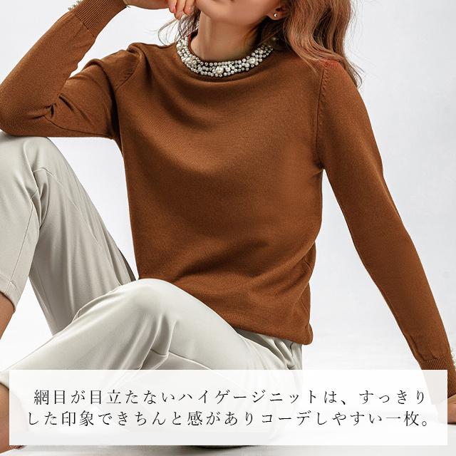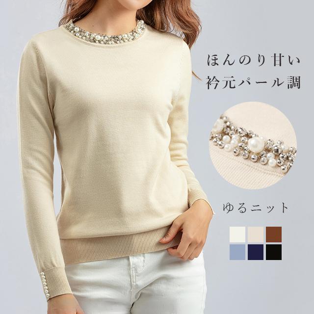 送料無料 春新作 パール トップス ニット レディース 長袖 ニットトップス ハイゲージニット ニットプルオーバー パールネック パール付き ぱーる レディースニット プルオーバー ニットセーター セーター クルーネックニット 長袖ニット ボーダー 体型カバー きれいめ 通勤