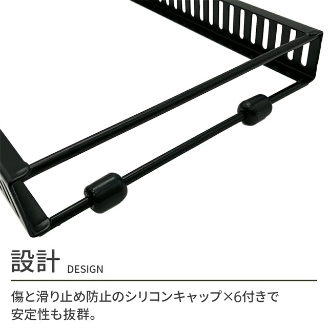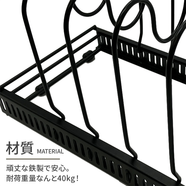| 仕様 | 【カラー】ブラック、ホワイト 【サイズ】高さ19×幅18×長さ31〜58cm 【商品重量】約1215g 【耐荷重量】40kg 【材質】鉄、シリコン 【セット内容】フレーム×2、スタンド×10、滑り止めキャップ×6 |