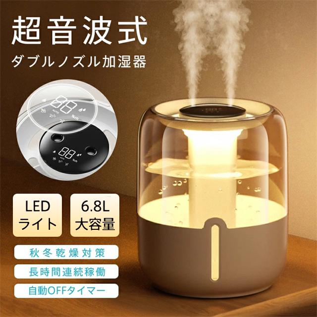 送料無料 冬新作 加湿機 スチーム式 卓上 超音波式 自動停止 湿度表示 ダブル噴霧 加湿器 大容量 6.8L 湿度測定 おしゃれ スチーム USB給電式 上部給水 アロマ ナイトライト 小型 省エネ 静音 最大20H お手入れ簡単 花粉対策 乾燥対策