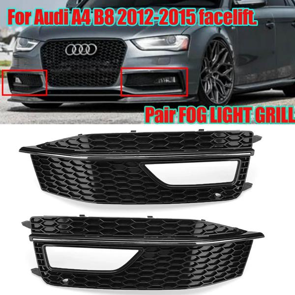 ペアグロスブラックフロントバンパー下部フォグライトグリルグリルアウディ A4 B8 S ライン S4 2012 2013 2014 2015 8K 0807681 P8K 0807682 P