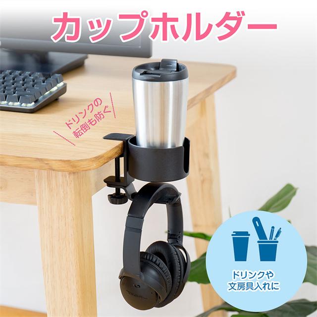 送料無料 春新作 ドリンクホルダー デスク ボトルホルダー テーブル カップホルダー イヤホンスタンド アームレスト 収納ホルダー ヘッドホンスタンド コップホルダー クランプ式 フック付き 鞄かけ 取付簡単 耐荷重5キロ バッグハンガー カバン掛けダー