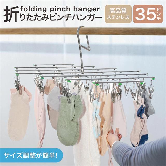 冬新作 送料無料 ピンチハンガー ステンレス ピンチ 35個 物干し ハンガー 折りたたみ 伸縮 コンパクト ランドリー 洗濯 部屋干し ベランダ 洗濯バサミ 洗濯ばさみ タオル掛け 室内干し シンプル おしゃれ