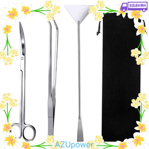 水草トリミングセット カーブハサミ カーブピンセット サンドフラッター 3点セット ステンレススチール製 実用 便利 多機能 水槽管理 水草植栽 水族館用 収納バッグ付き
