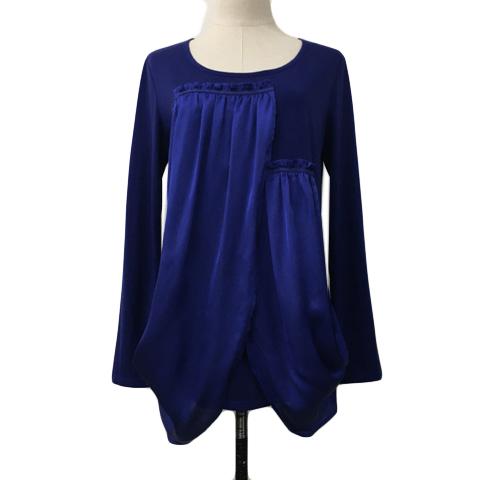 【中古】エーティー アツロウタヤマ カットソー プルオーバー ラウンドネック 切替 サテン ドレープ 長袖 38 青 紫