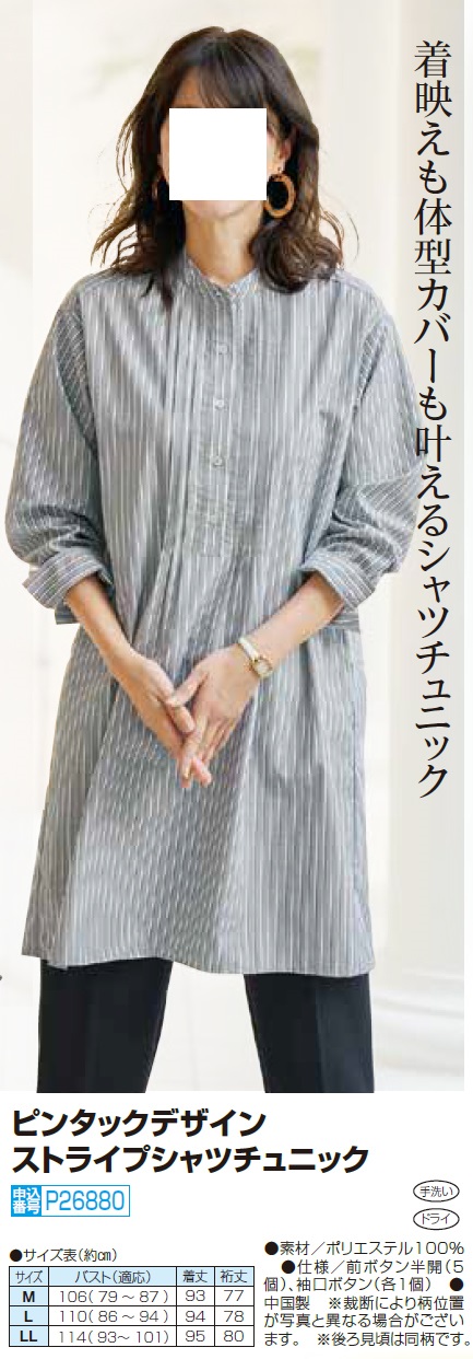ピンタックデザインストライプシャツチュニック グレー チュニック ブラウス 長袖 レディース 婦人服 ミセス シニア 女性 バンドカラー シャツ 縞模様 縞柄 シンプル おしゃれ シニアファッション 40代 50代 60代 70代 80代 90代 母の日 お母さん 春夏 nss p26880