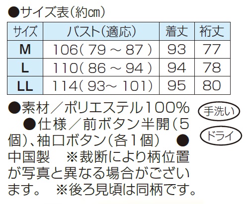 ●仕様/前ボタン半開(5個)、袖口ボタン(各1個)