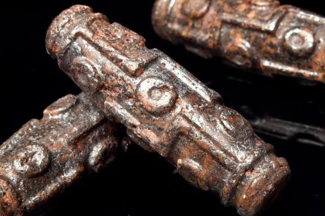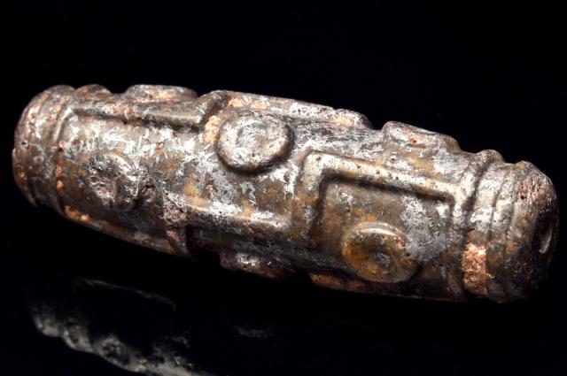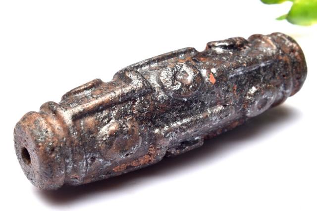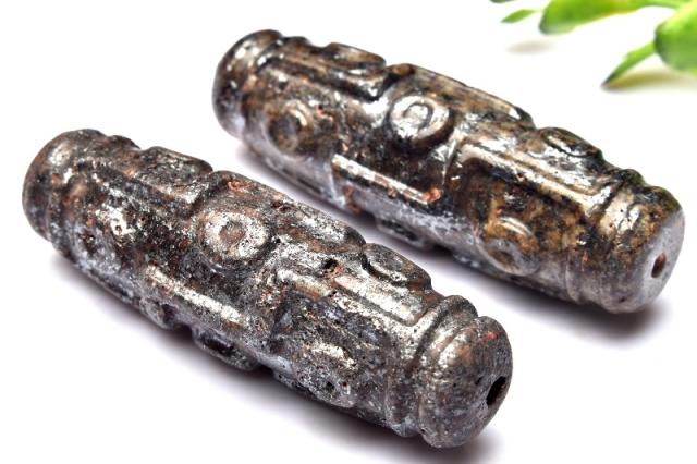 サハラ砂漠産 コンドライト隕石(サハラNWA869隕石) 53-54x16mm 九眼天珠 ビーズ 1個売り 【ネコポス送料無料】_PRG2252-1