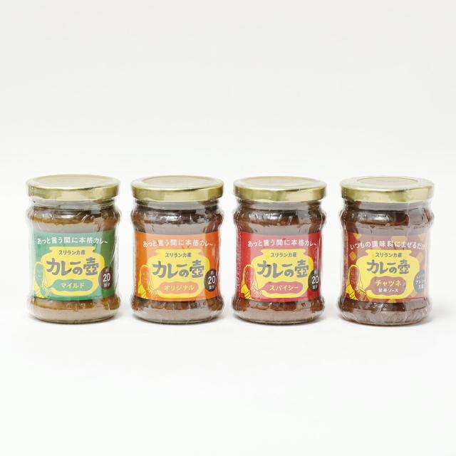 カレーやスパイスが好きなあの人へ。 第3世界ショップの万能カレー調味料「カレーの壺」3種と、カレーと合わせて美味しい「チャツネ」を組み合わせたギフトセットです。