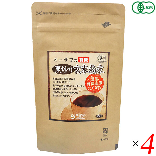 オーサワの有機黒炒り玄米粉末 150g 4個セット 玄米 コーヒー ノンカフェイン デカフェ