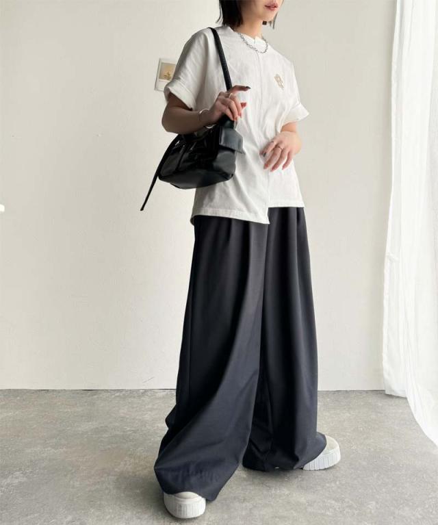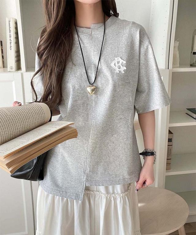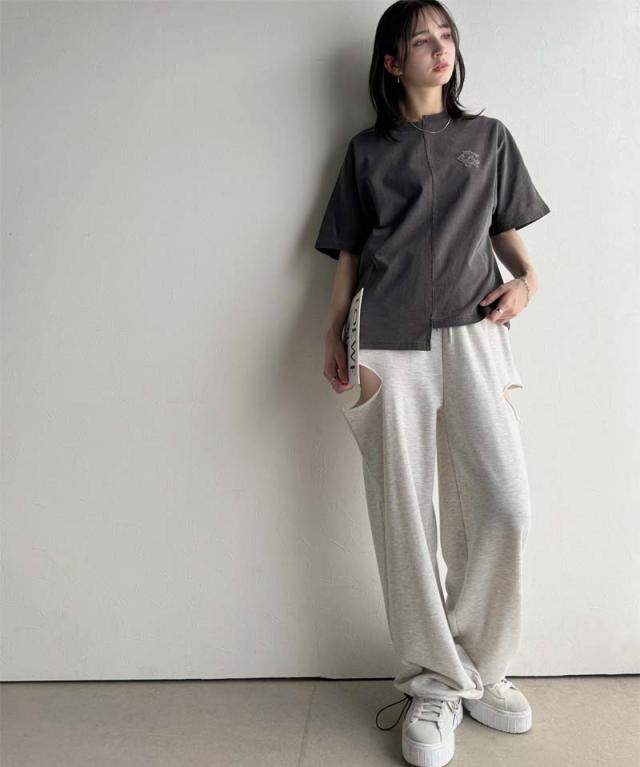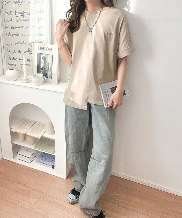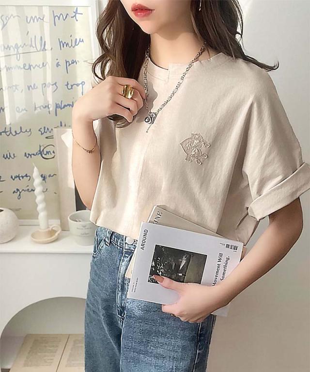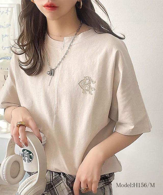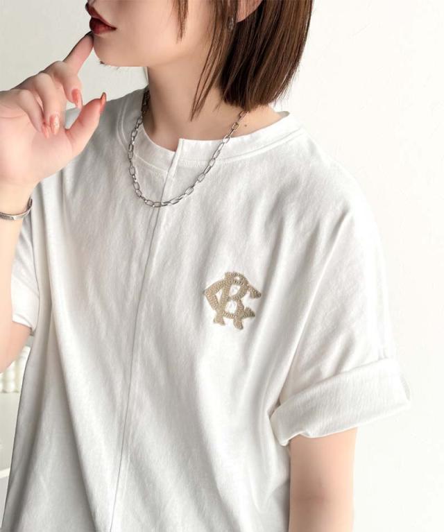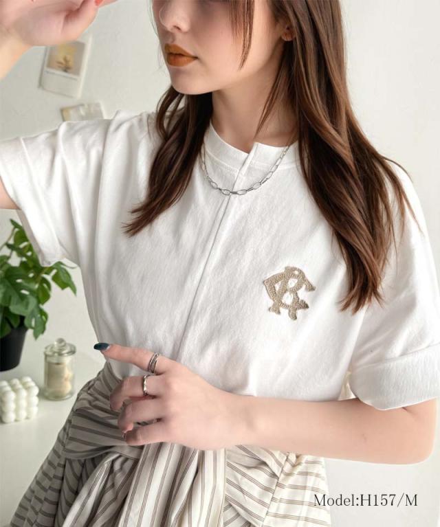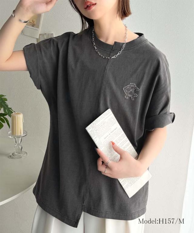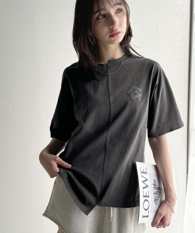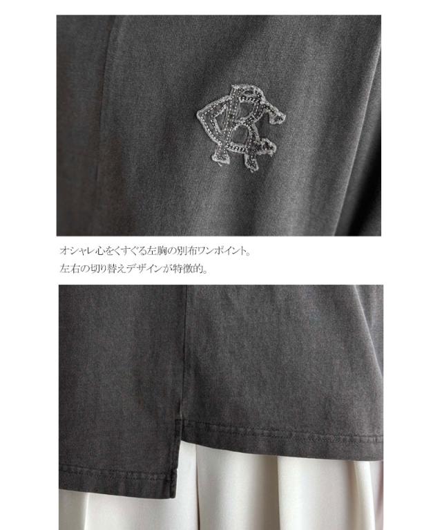 クラシカルエルフ春新作 JaVaジャバコラボ トップス Tシャツ カットソー レディース 綿100% 切替 アシメントリー 段違い レイヤード ピグメント加工 アップリケ風 ワンポイント カジュアル デイリー ワンマイル こなれ感 2026ss jv1330014