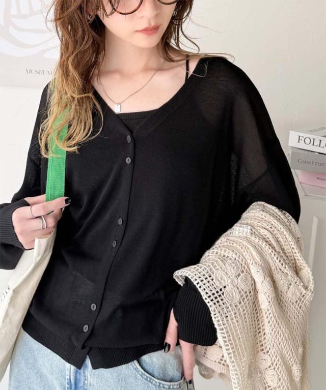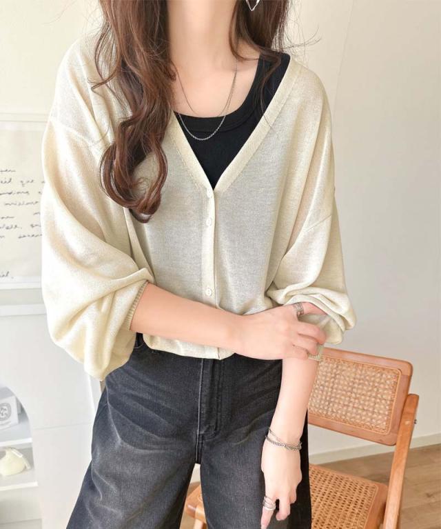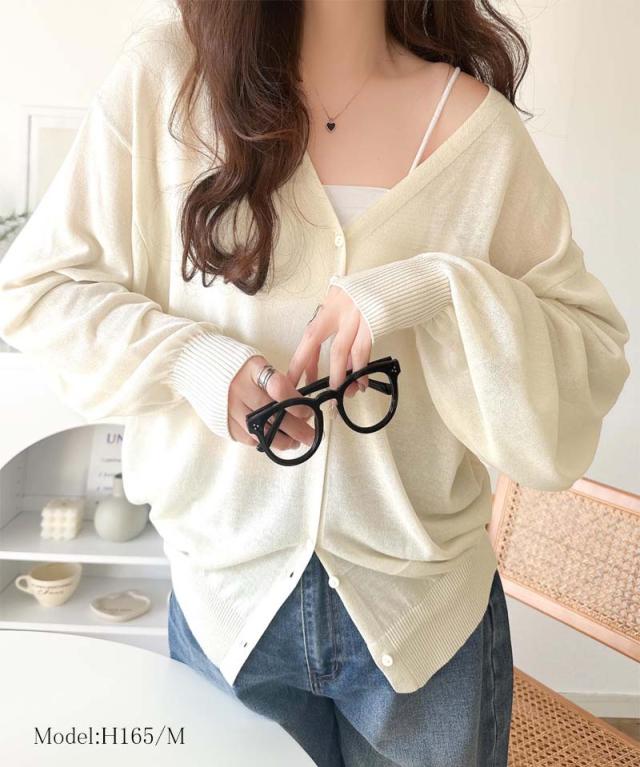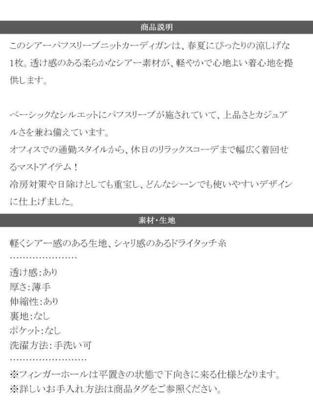 クラシカルエルフ春新作 トップス カーディガン/ボレロ レディース シアーパフスリーブニットカーディガン サムホール パフスリーブ デザイン性のあるボタン間隔 大きいサイズ 2026ss ce1260417