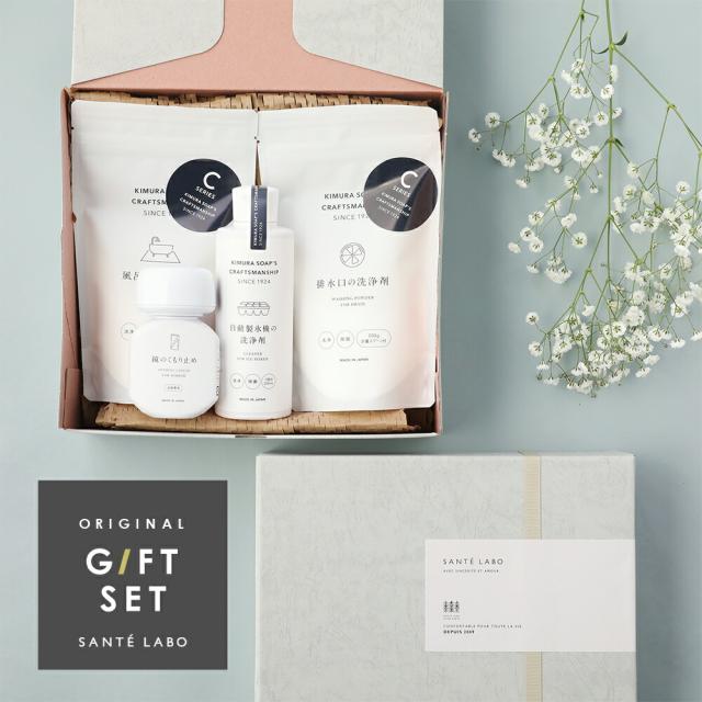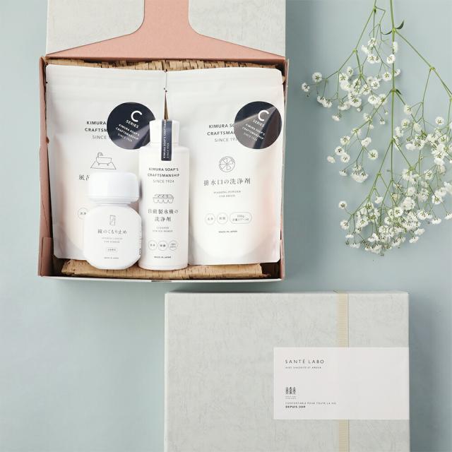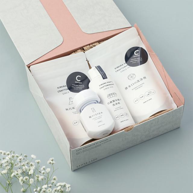 【サンテラボ オリジナルギフトセット】クラフトマンシップ お掃除セット <箱代・ラッピング代込> 木村石鹸 Cシリーズ 洗剤 お風呂 キッチン 排水口 製氷機 掃除 日用品 おしゃれ パッケージ ホワイト ギフト 贈り物 引っ越し祝い 新築祝い