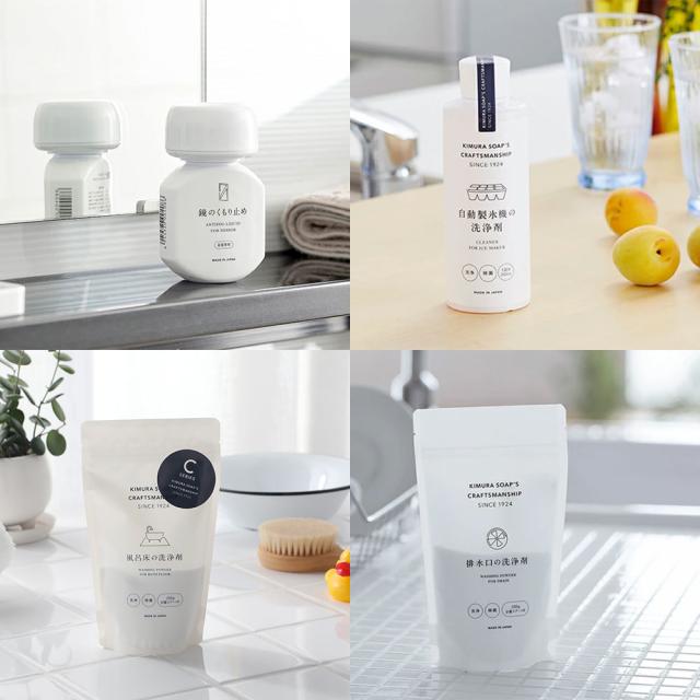 掃除しにくい場所が簡単にすっきりピカピカ。 石けん一筋90年・木村石鹸のクラフトマンシップシリーズから人気のお掃除洗剤4点をセットにしました。