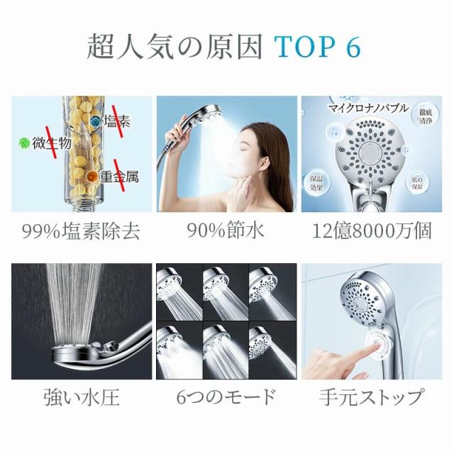 楽天1位【99%塩素除去】 シャワーヘッド マイクロナノバブル 塩素除去 90%節水 強い水圧 6つのモード 高洗浄力 手元止水 ミスト 保湿 保温 増圧 節水 超微細泡 毛穴 汚れ除去 美肌 美顔 美髪 取付簡単 2025年最新
