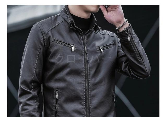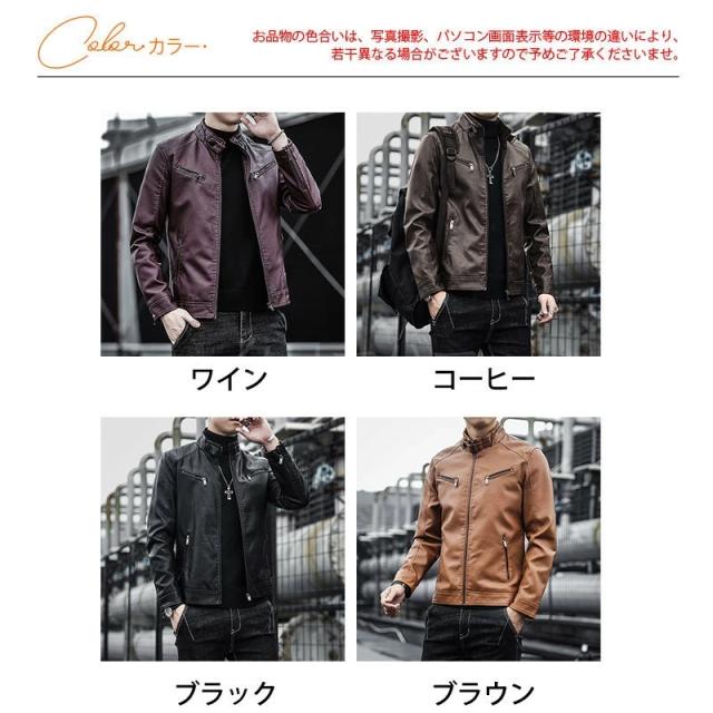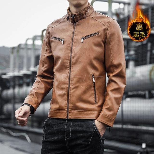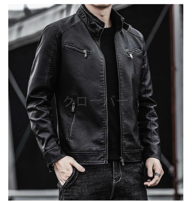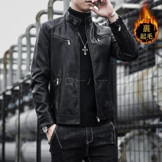 ライダースジャケット メンズ 革ジャン 裏起毛 レザージャケット アウター 機能的 立ち襟 カジュアル PU ゆったり 高級感 防風 秋冬 かっこいい