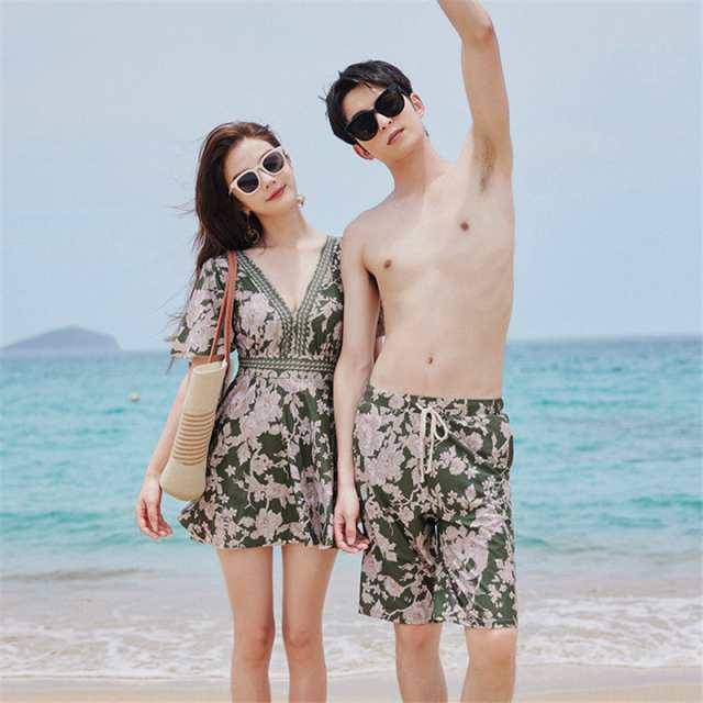 水着 ペアルック カップル 水着 ペア 韓国 人気 カップル ワンピース ショートパンツ 男性用海パンツ ワンピースタイプ ラッシュガードお揃い 水着 シンプル カジュアル