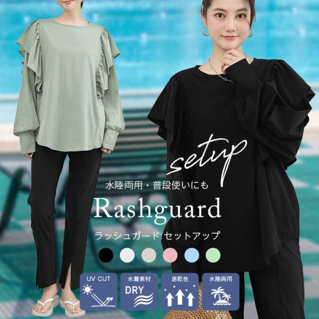 水陸両用 ラッシュガードセット、UV対策 紫外線対策 ママ水着 足長効果レディースファッション 水着