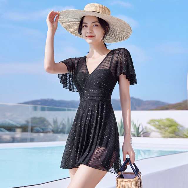 水着 体系カバー水着 ワンピース フリル 谷間魅せ 盛れる かわいい 大人可愛い きれいめ セクシー sexy シンプル カジュアル ナチュラル ゴージャス 華やか 大人 大人っぽい おしゃれ お洒落