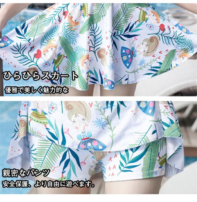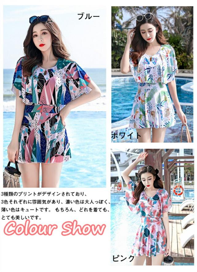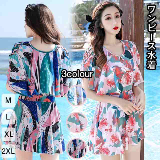 水着 ワンピース2点セット レディース 体型カバー ソフト肌触り 旅行 葉の柄 オールインワン バッグ付き 夏 露出控えめ 水陸両用 シャツ トップ プール 温泉