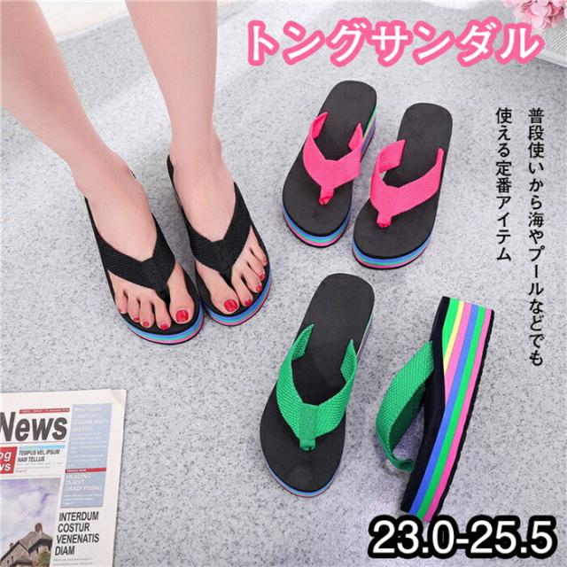 トングサンダル レディース 厚底 レインボーソール ビーチサンダル スポーツサンダル スポサン 厚底 ウェッジソール ストラップ ベルト 厚底 ウェッジソール 疲れない 歩きやすい
