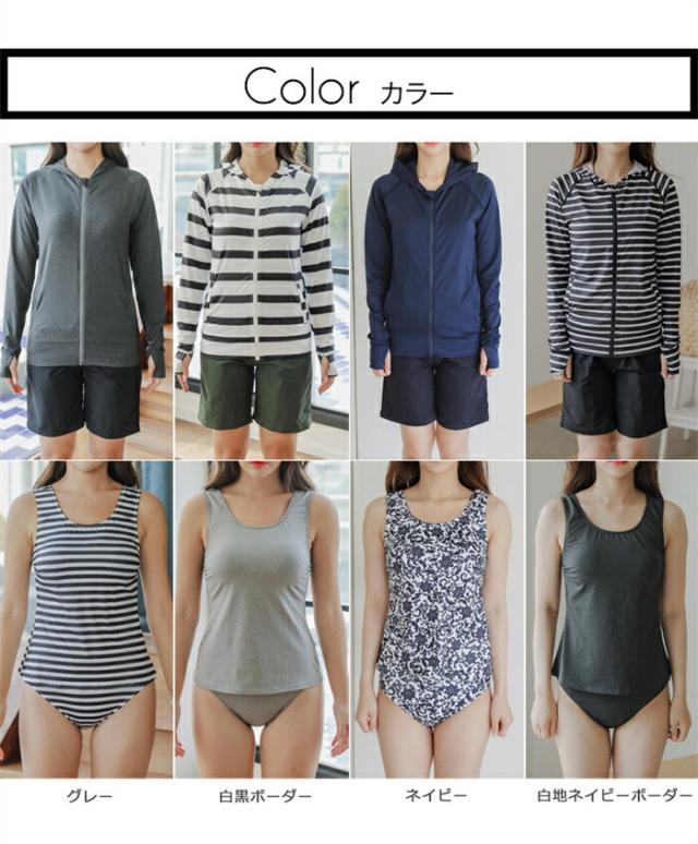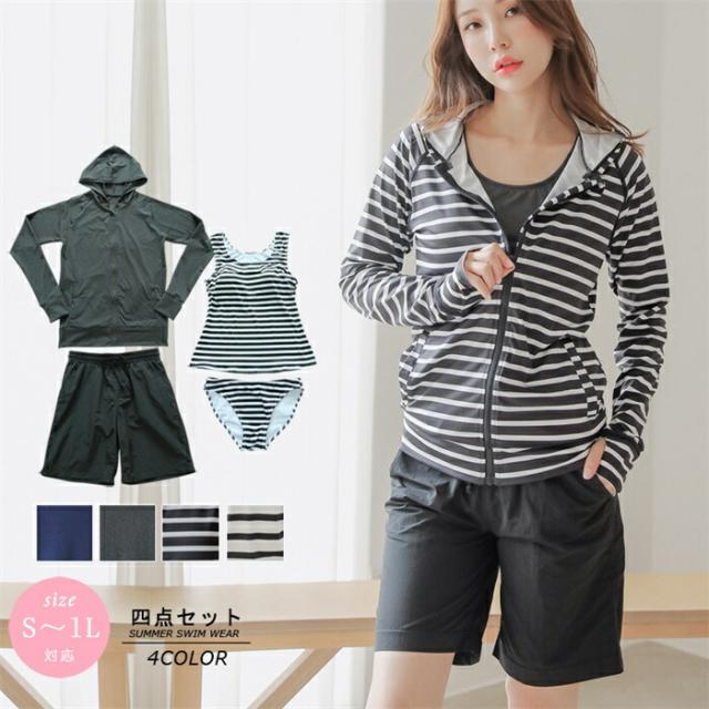 水着 レディース 体型カバー タンキニ ラッシュガード タンクトップ ショートパンツ UPF50+ UVカット加工 4点セット S-XL
