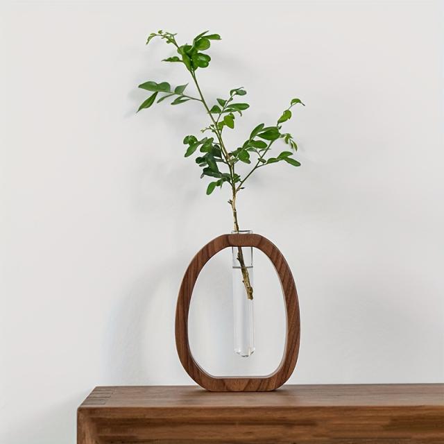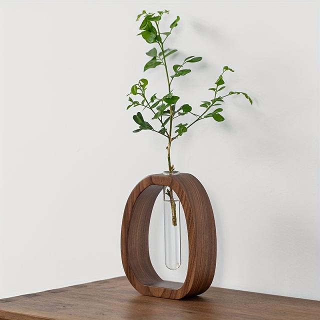 ウォールナットカラーフラワーベース、ミニ花瓶、シンプルでモダンなインテリア