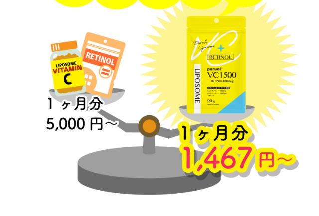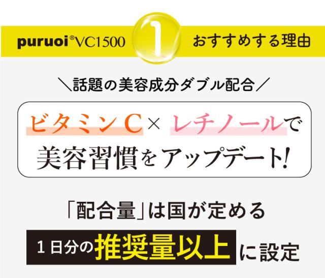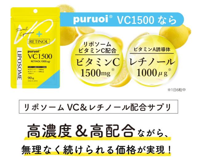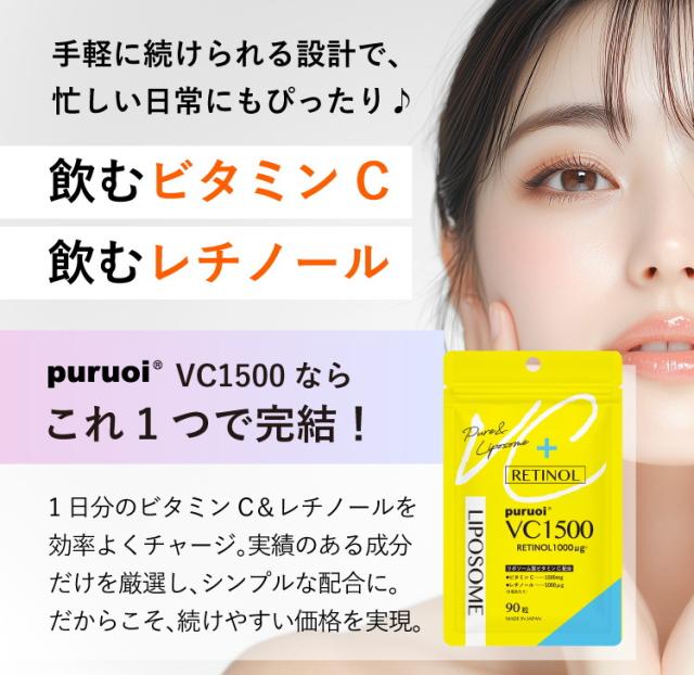 リポソーム ビタミンC & レチノール 配合 プルオイVC1500(90粒入) ビタミン リポソーム レチノール サプリ サプリメント 錠剤 日本製 飲むレチノール