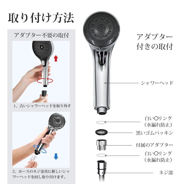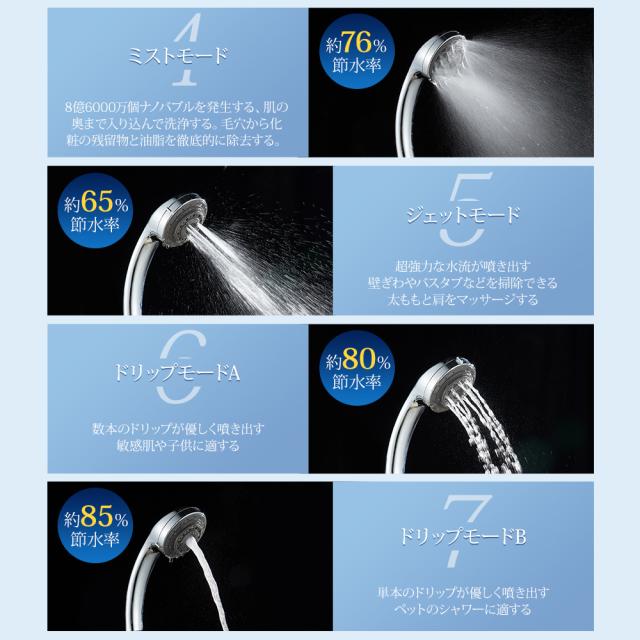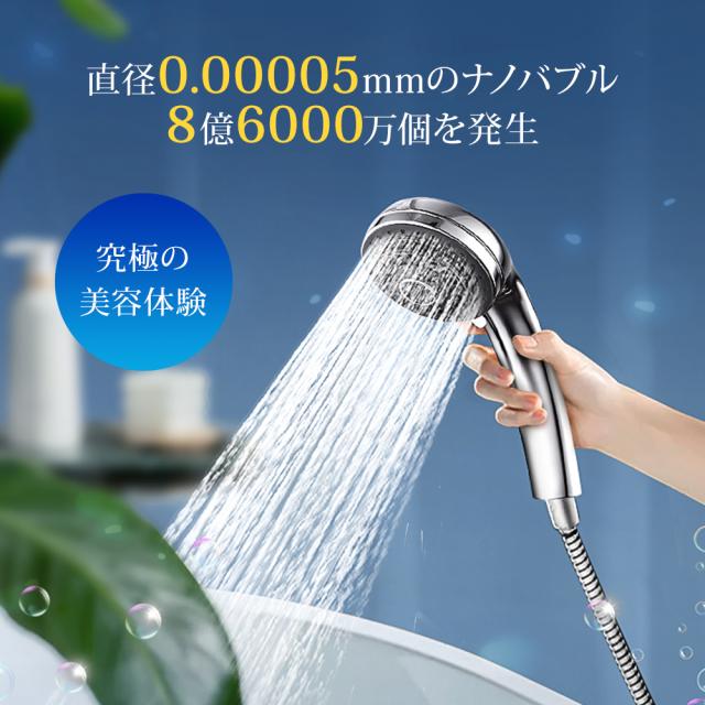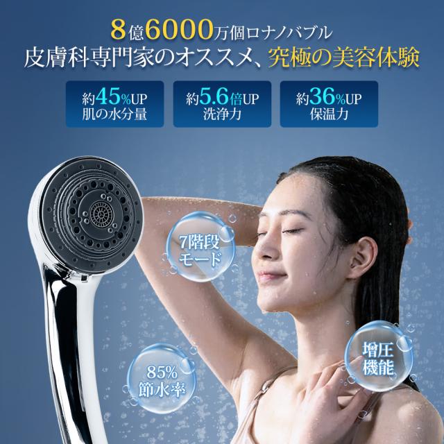 【7段階モード】 シャワーヘッド 節水 洗浄力 マイクロバブル ナノバブル 7段階モード 節水 高水圧 ミスト 毛穴 ケア 汚れ 除去 美肌 保湿 マイナスイオン 美肌 美容 美顔 頭皮ケア お風呂 取り付け簡単 アダプター付 シルバー フト