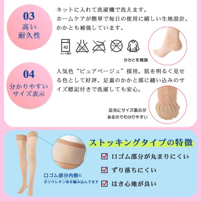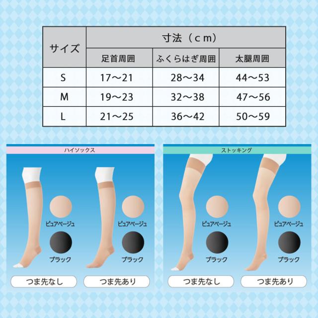 Mサイズ :足首周囲19〜23cm、ふくらはぎ周囲32〜38cm、大腿周囲47〜56cm