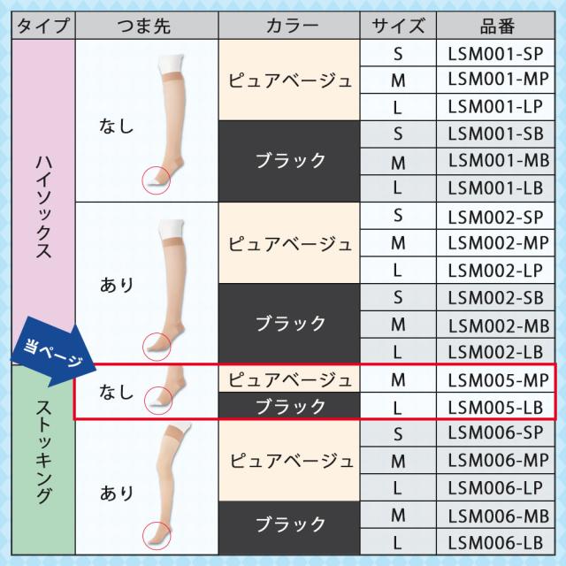 Lサイズ :足首周囲 21〜25cm、ふくらはぎ周囲36〜42cm、大腿周囲50〜59cm