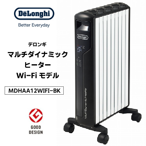送料無料 電気ストーブ ヒーター 電気暖房 オイルヒーター デロンギ Delongi マルチダイナミックヒーター オイルレス wifi 8〜10畳 やけどしにくい表面温度 MDHAA12WIFI-BK