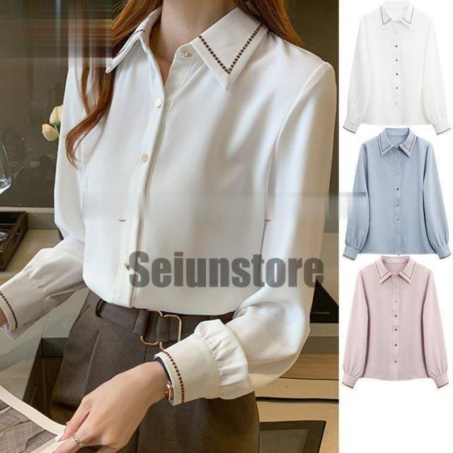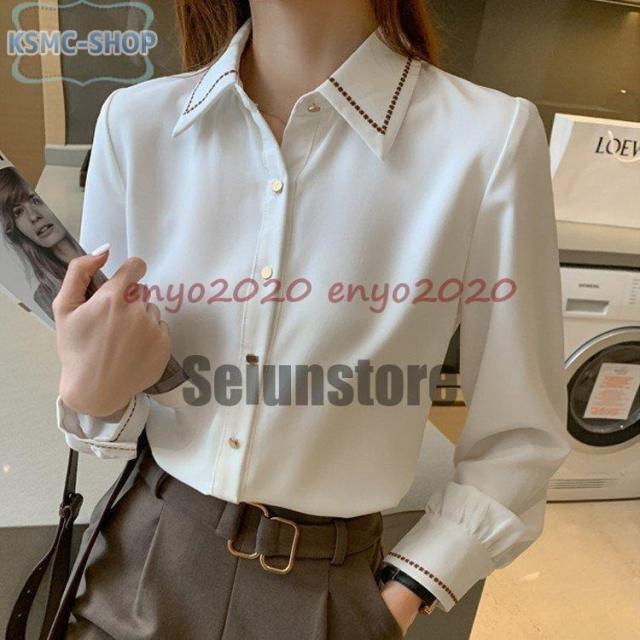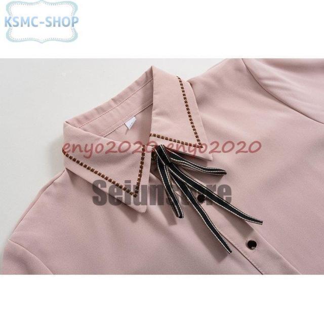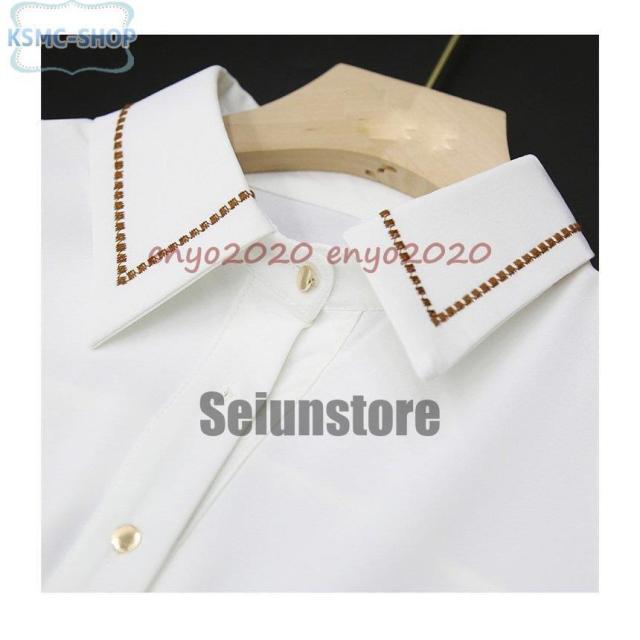 シャツ レディース トップス シャツブラウス 長袖 襟付きシャツ リボン 2way 白シャツ ステッチ オフィス 制服 フォーマル