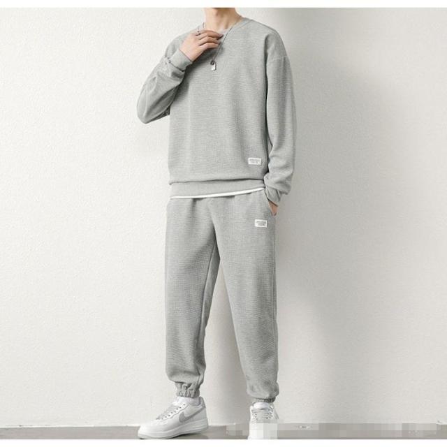 オトナらしく決まるスウェットセットをご用意。細身シルエットでスタイルアップも効果的に◎