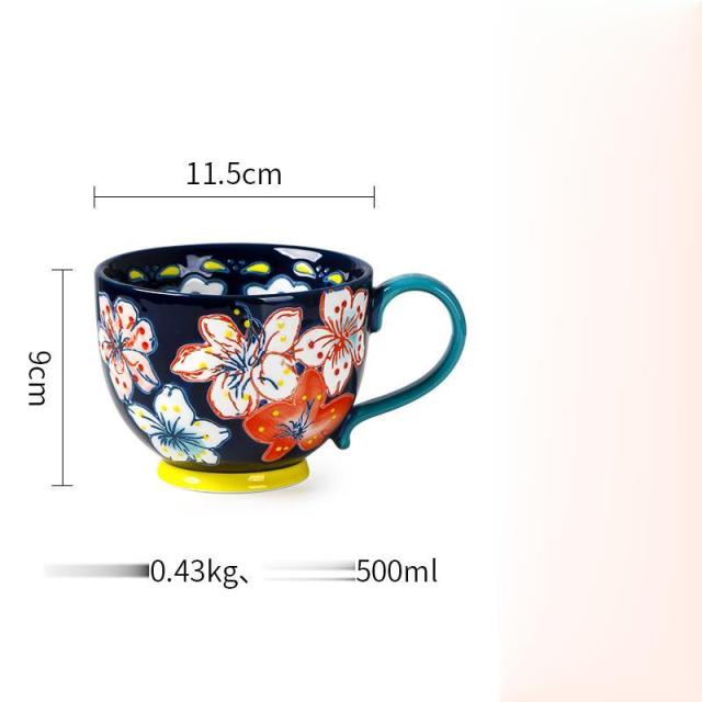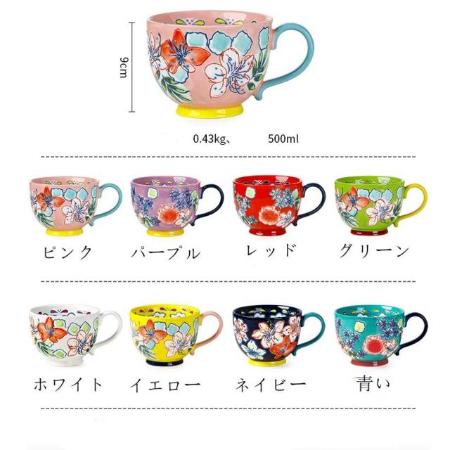 マグカップ 北欧 おしゃれ コーヒーカップ 大きい 陶器 ハンドメイド 朝食カップ 大容量 コップ カフェマグ キッチン雑貨 洋食器 食器 磁器 500ml