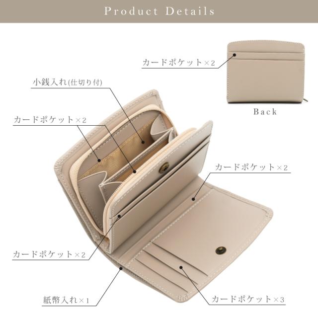 | スペック | 紙幣入れ×1 小銭入れ(仕切りあり)×1 小銭入れ内側カードポケット×2 カードポケット 内側×7 / 外側×2 |