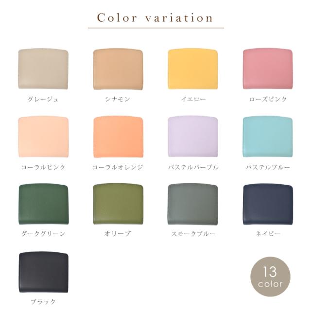 | 特徴 | パッと華やぐ大人カラー、本革の上質さを日常に。 選べて嬉しい13色 肌ざわりが良い牛革素材 さらっとした触り心地のなめらかなスムースレザーを使用。 表面に特殊なコーティングを施す事により、雨や汚れに強く、耐久性があります。 本革のマットな質感が上品さを演出します。 ●小銭入れ(仕切り付) 小銭入れはラウンドファスナー型で開きやすく、小銭が見やすい設計。 中は仕分けに便利な仕切り付き。 ●小銭入れ内側カードポケット(2ヵ所) 小銭入れ内側の両サイドにはカードポケットが2ヵ所。 ファスナー付きで、より安心なので銀行のカードやクレジットカードを入れておくにもおすすめ。 ●カードポケットは全部で11ヵ所 ●紙幣入れ(1カ所) ガバッと開いて見やすいお札入れ。仕切りはありませんが、その分ゆとりがあるのでスムーズに出し入れが可能。 コンパクトなのにお札を折らずに収納出来るのも嬉しいポイントです。 ●スナップボタン開閉 カード収納部分はスナップボタンで開け閉めラクラク。 ●スキミング防止機能搭載 『目に見えないスリ』から情報を守るスキミング防止機能は現代社会のマスト機能です。 特殊なフィルムを革や生地の間に挟む事で外部からの電波干渉を防ぎます。 ●シンプルなデザインなので男女問わずお使いいただけます。 ●証明試験を行った牛革を使用しています。 お客様に安心してご購入いただけるよう、MGSABLEでは本革の証明試験を行っております。 ●“革の表情”について、ご購入前にご確認ください 天然のキズやシワなども入っている場合があり、これらは本革ならではの個体差によるものと、 二つとない表情を魅せる革の個性であるため、風合いをお楽しみ頂けると幸いでございます。 ※ひどく目立つものを除いて、ある程度は革の個性としてそのまま出荷・発送を致します。 ※上記のような革の個性による返品・交換は原則お受け致しかねますので、予めご了承下さいませ。 ●ラッピング承ります ご注文の際にラッピング希望『する』をご選択ください。 ※写真はラッピングイメージです。カラー・デザインは男女兼用の物でお包み致します。 |