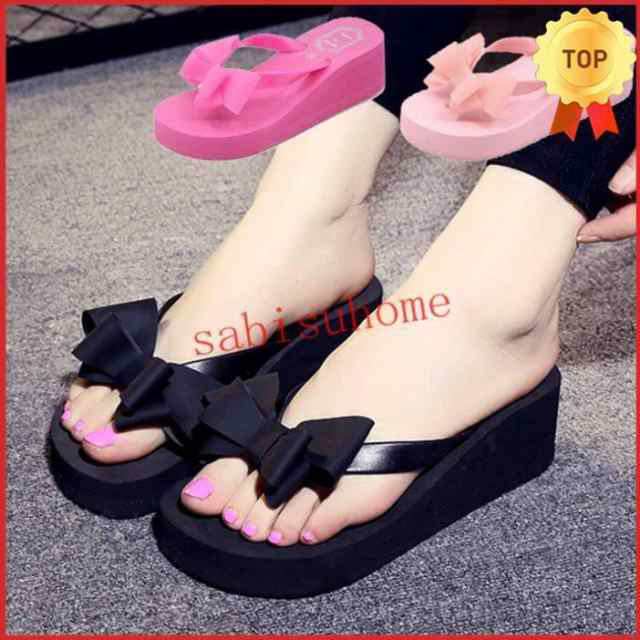 ビーチサンダル 可愛いトングサンダル レジャー用 ヒール トレンド大人 ウェッジソール 厚底ビーサン 軽量 厚底 リボン シンプル トング