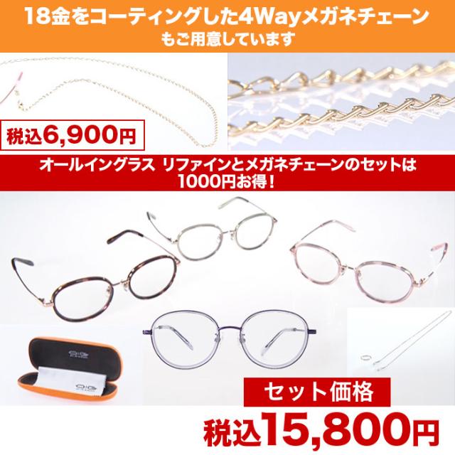 18金をコーティングした4Wayメガネチェーンもご用意しています