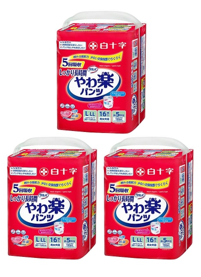 サルバ やわ楽パンツ しっかり長時間 L-LLサイズ 35497 16枚入×3袋 1ケースまとめ買い 大人用 介護 紙おむつ
