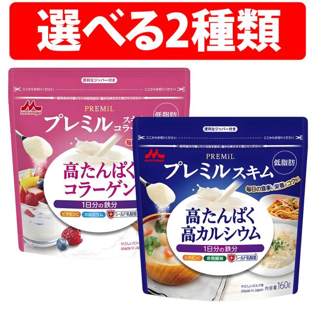 森永乳業 森永 PREMiL スキム コラーゲン カルシウム 160g 2袋 低脂肪 タンパク質 カルシウム 鉄分補給 コラーゲン PREMiL PLUS スキム 香料不使用 シールド乳酸菌 食物繊維 ビタミンC 食品 飲料 シュガー ミルク ガムシロップ ミルク プレミル 乳酸菌