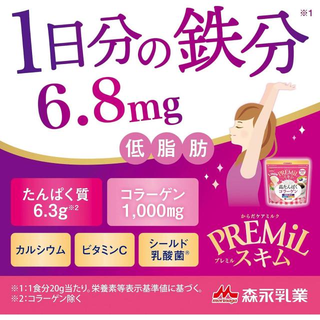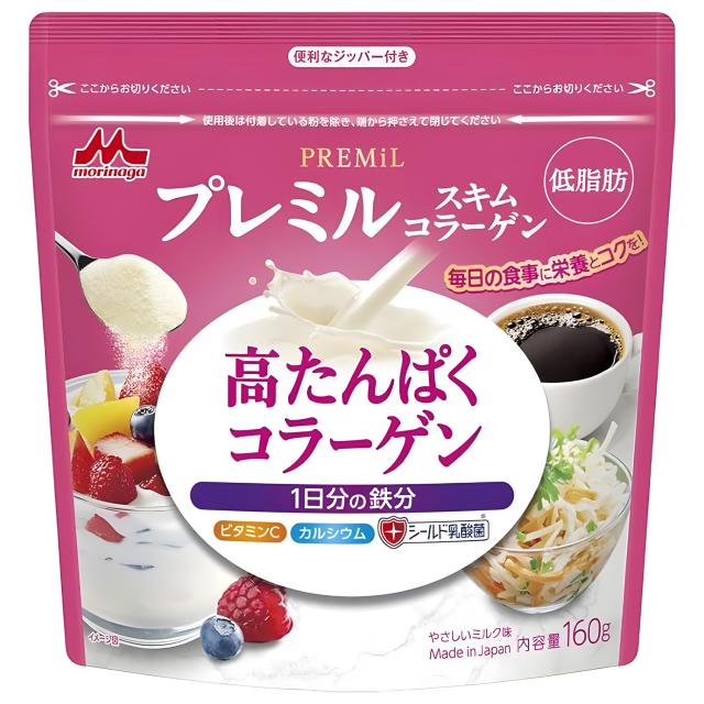 森永乳業 森永 PREMiL スキム コラーゲン カルシウム 160g 1袋 2袋 24袋 低脂肪 タンパク質 カルシウム 鉄分補給 コラーゲン PREMiL PLUS スキム 香料不使用 シールド乳酸菌 食物繊維 ビタミンC 食品 飲料 シュガー ミルク ガムシロップ ミルク プレミル 乳酸菌