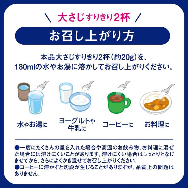 【スキムコラーゲン】脱脂粉乳(国内製造)、コラーゲンペプチド、乳酸菌(殺菌)/V.C、ピロリン酸鉄、(一部に乳成分・ゼラチンを含む)【スキム】脱脂粉乳(国内製造)、ミルクカルシウム、加糖脱脂練乳、難消化性デキストリン、ホエイパウダー、水あめ、ミルクオリゴ糖(ラクチュロース)、殺菌乳酸菌粉末/V.C、ピロリン酸鉄、炭酸K、(一部に乳成分を含む)